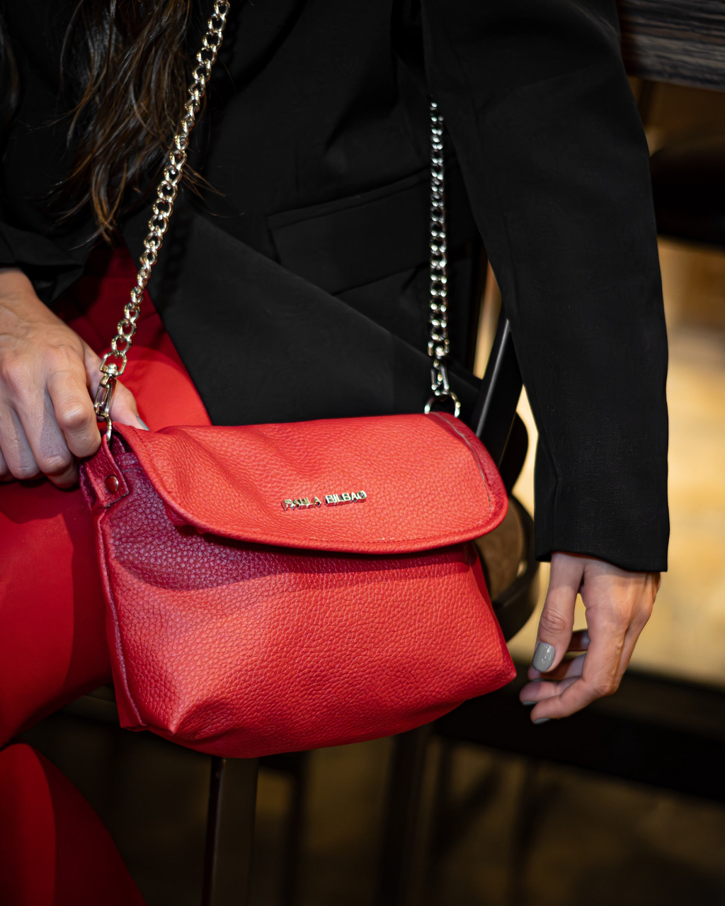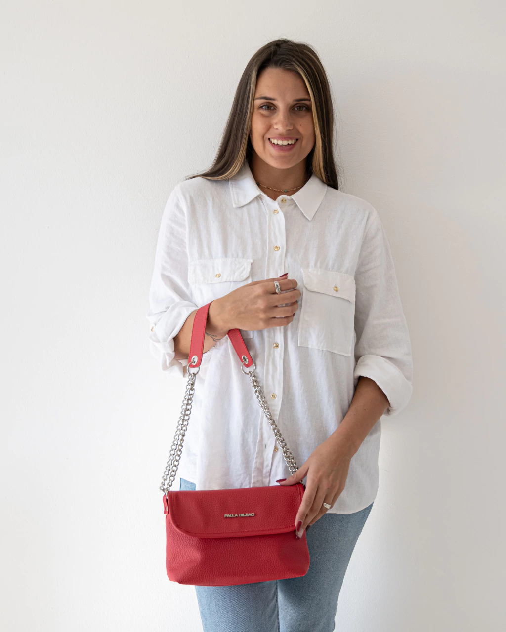 Cartera de ecocuero forrada con cierre interno y ganchito imantado